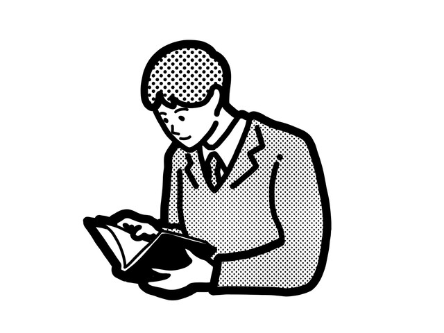 illustration material:本を読む生徒02/白黒(student reading a book02/monochrome)