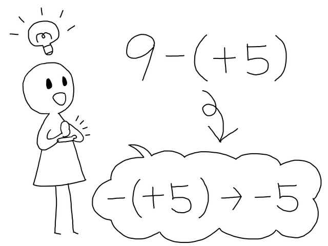 illustration material:中学校数学科・数と式・正の数と負の数の四則計算・負の数を含む減法で正の数をひくとき/白黒(subtraction/monochrome)