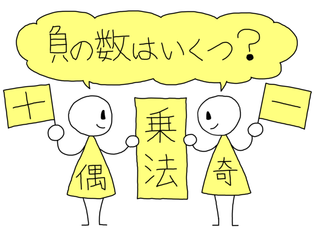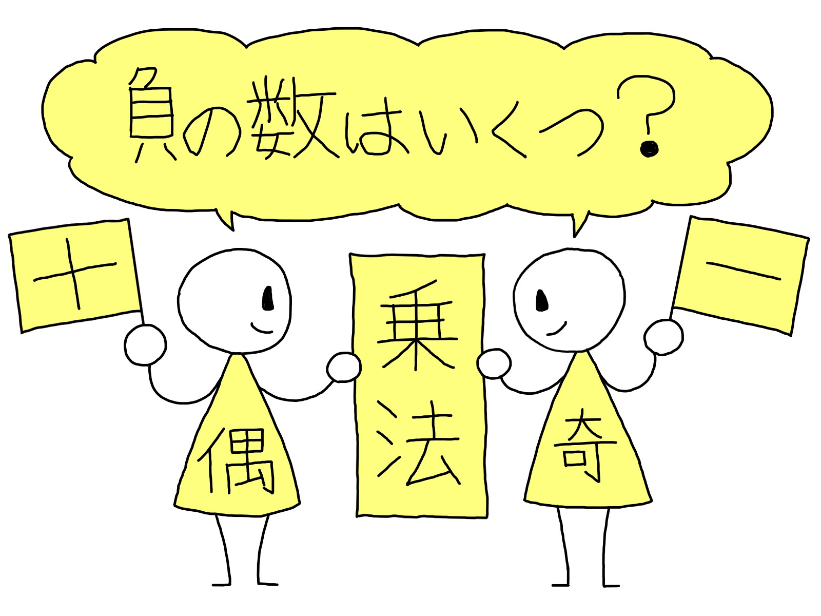 illustration material:中学校数学科・数と式・正の数と負の数の四則計算・負の数を含む乗法では負の数の個数を数えて符号を決める/カラー(Multiplication of negative numbers/color)