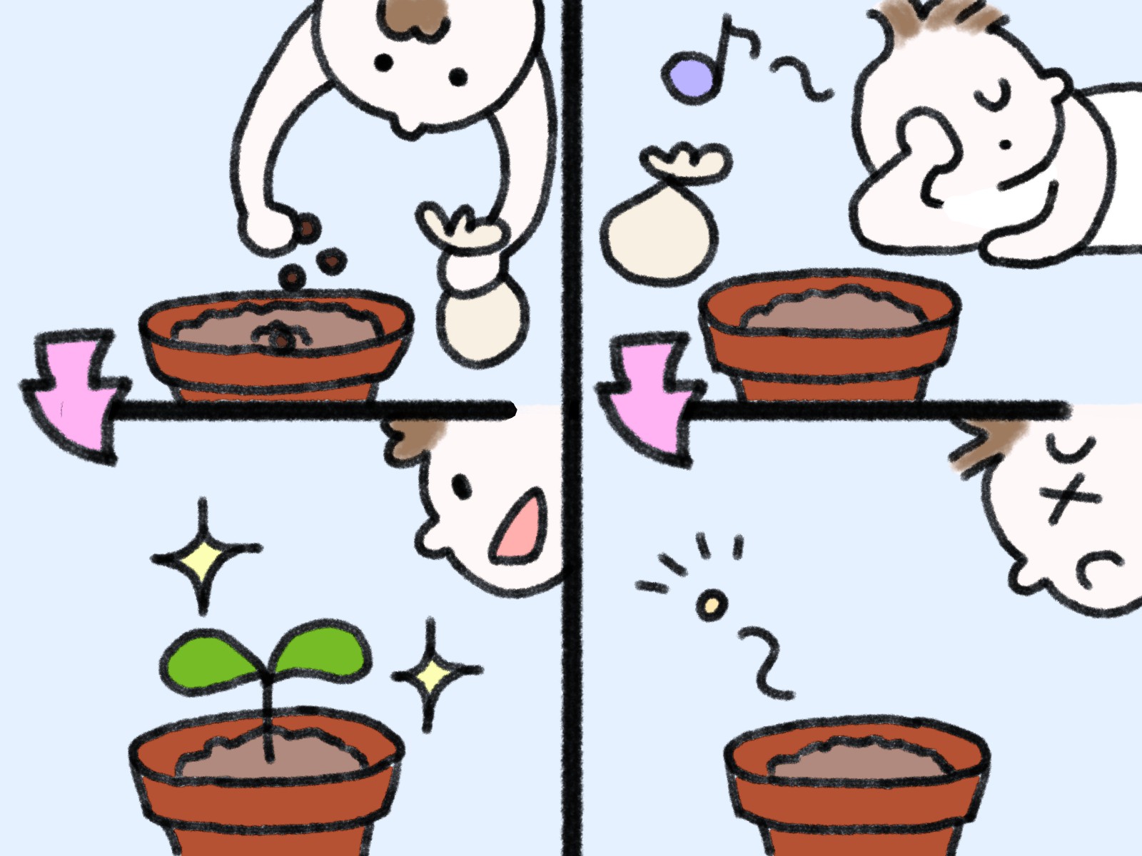 illustration material:中学校国語・ことわざ・蒔かぬ種は生えぬ/カラー(No gain without pain./color)
