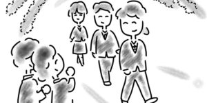 illustration material:中学校行事・3年生を送る会/白黒(Junior high school events/3rd grade send-off party/monochrome)